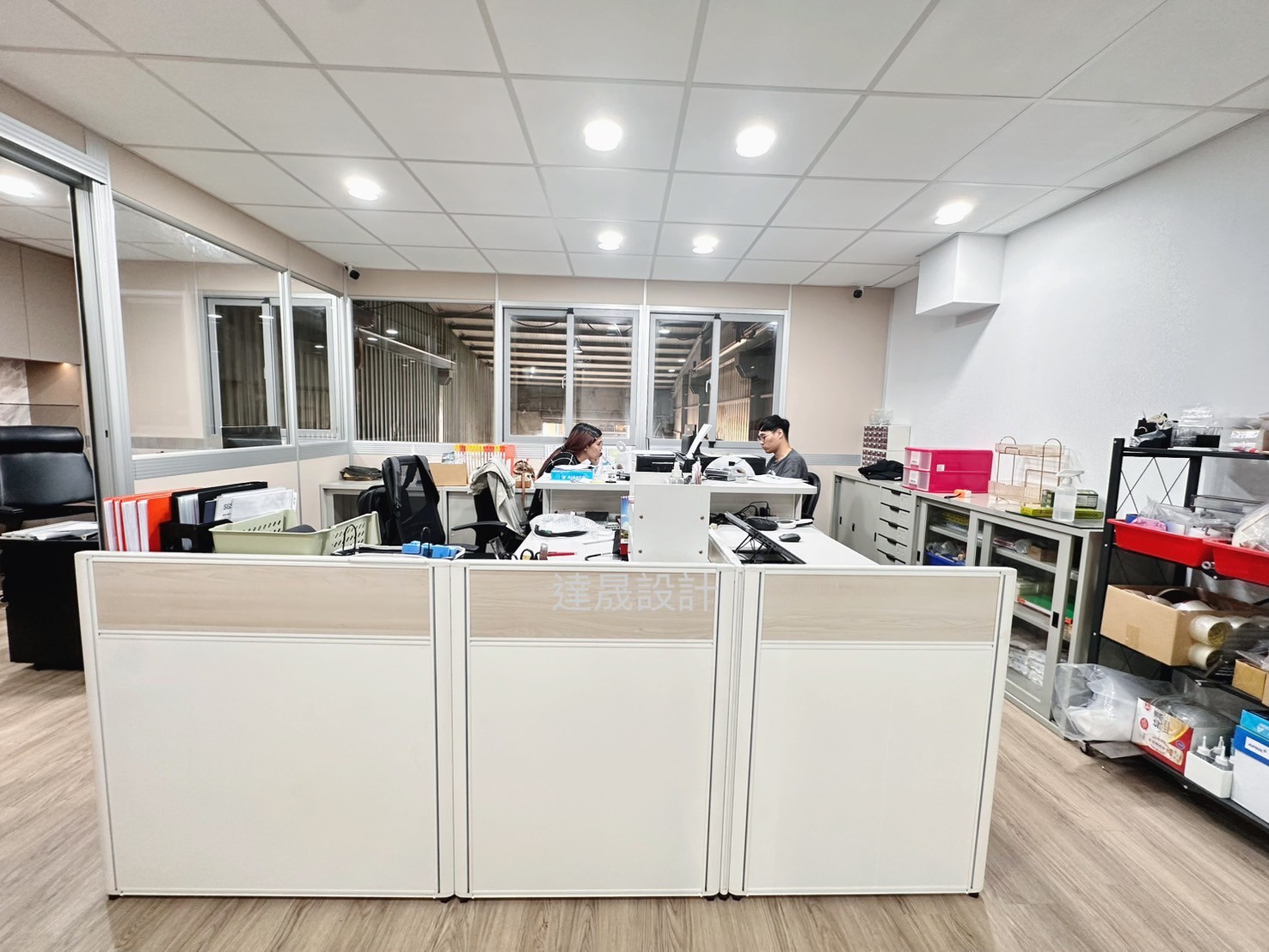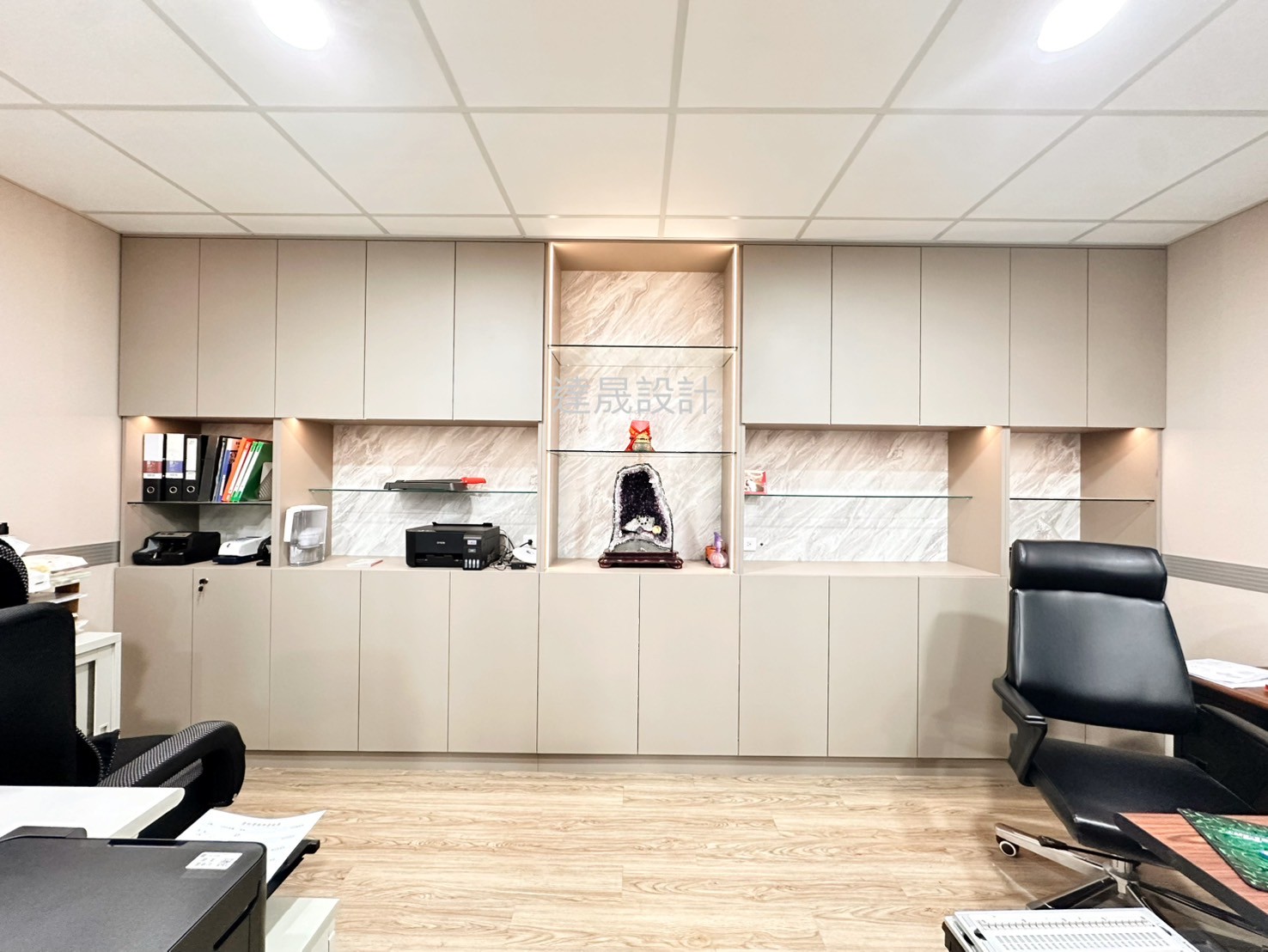 以柔和色調為主軸,沉穩、溫馨、明亮、提升舒適度與專注力,鐵件、木紋、玻璃、大理石紋多材質結合,增添層次感;整體佈局強調空間分區清晰、收納整合性強、提升員工工作效率與舒適度。