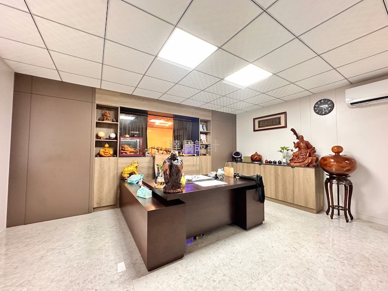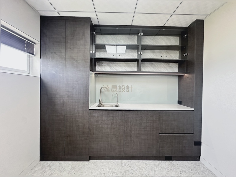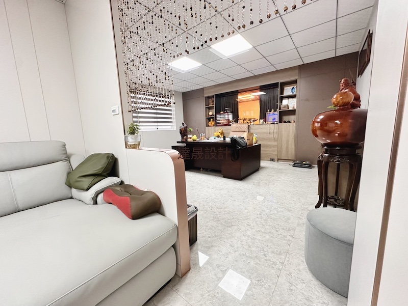融合了自然材質與簡潔線條的元素,採用中性色系為主題,讓整體空間呈現沉穩、專業、乾淨的視覺印象。